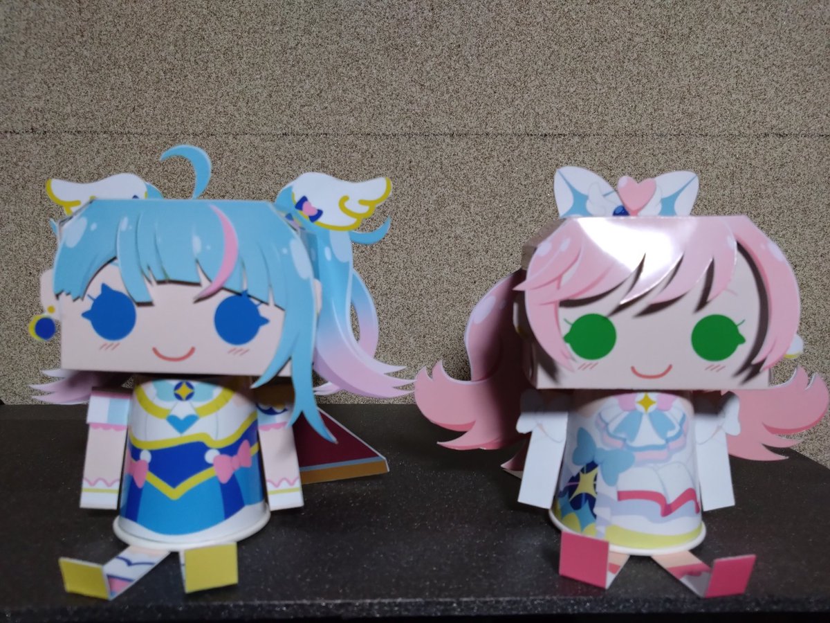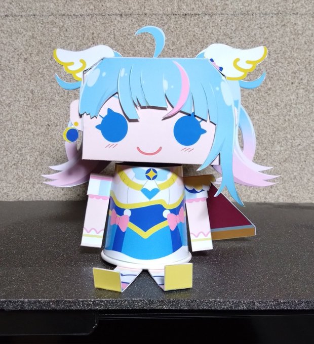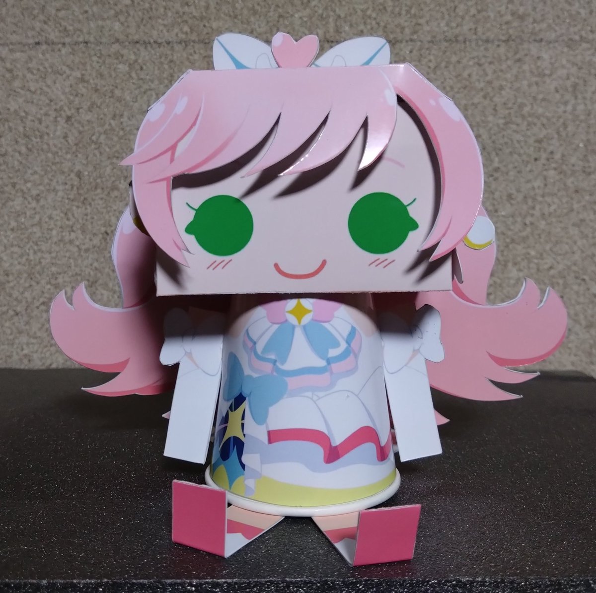 1 0 @tanyan0212 プリズムも組み立てました。こっちもかわいいです。 頭と胴体の接着は、コップの底にダイソーのカラーボードの切れ端を貼り付けて段差を埋めて、接着しました。 #プリキュア #ペーパークラフト 23/06/11 23:20