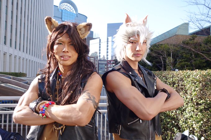 大人気なツイステからサバナクロー寮のレオナ先輩とジャック! スタイルが良すぎてめちゃくちゃカッコよかったです……撮る時一番緊張したかもしれませんw #アコスタ池袋