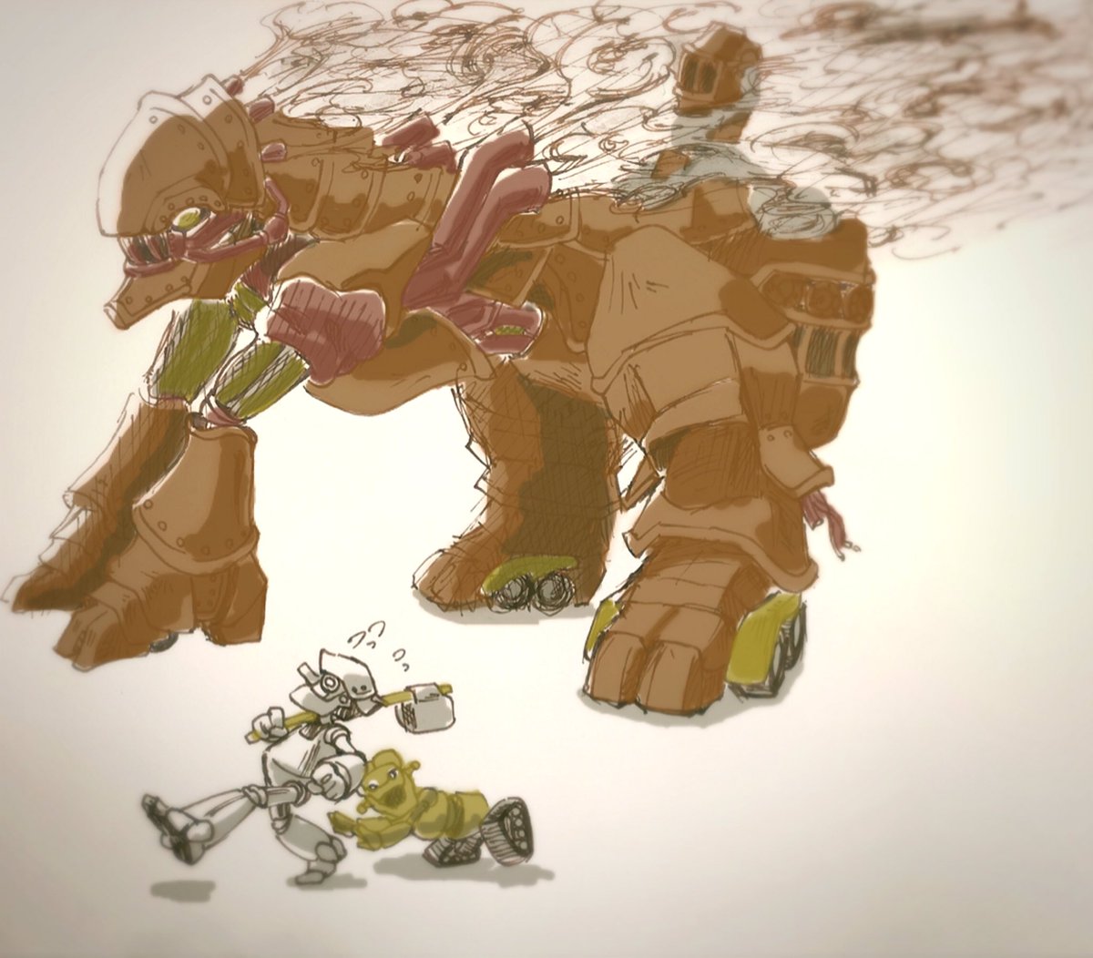 #とりあえずロボ絵をTLに流そう いつも過去絵で申し訳ない! ファーボス 弩級長距離輸送獣機《護爛 -ゴラン-》 ディーゼバイン 聖遺憲兵リゼ よろしくね(ง^ω^)ว 特にファーボスを…!! よろしくね!٩(ˊωˋ*)و