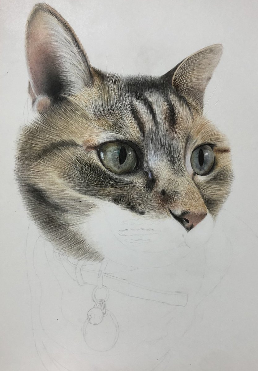 色鉛筆で猫を描きました🐱 沢山の方に見ていただけると嬉しいです⭐️ #色鉛筆 #色鉛筆画 #色鉛筆イラスト #絵描きさんと繋がりたい #猫 折角なので、こちらのタグも… #みんなのSNSなんでも展示会2022