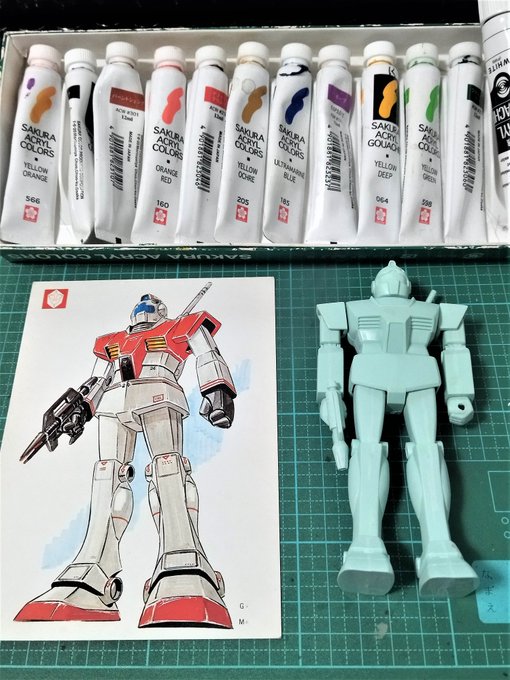 と、言う事でどこの家庭でもある絵の具で色塗りしたいと思います(*'▽') #旧キット #ガンプラ