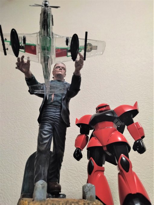 #今月作ったプラモ晒そうぜ 飛行機のラジコンで遊ぶ兄弟 ではなく2月出来たのは透明ムスタングとゲルググとフランケンです(*'▽') ゲルググは寡黙だが頼りがいのある兄の設定