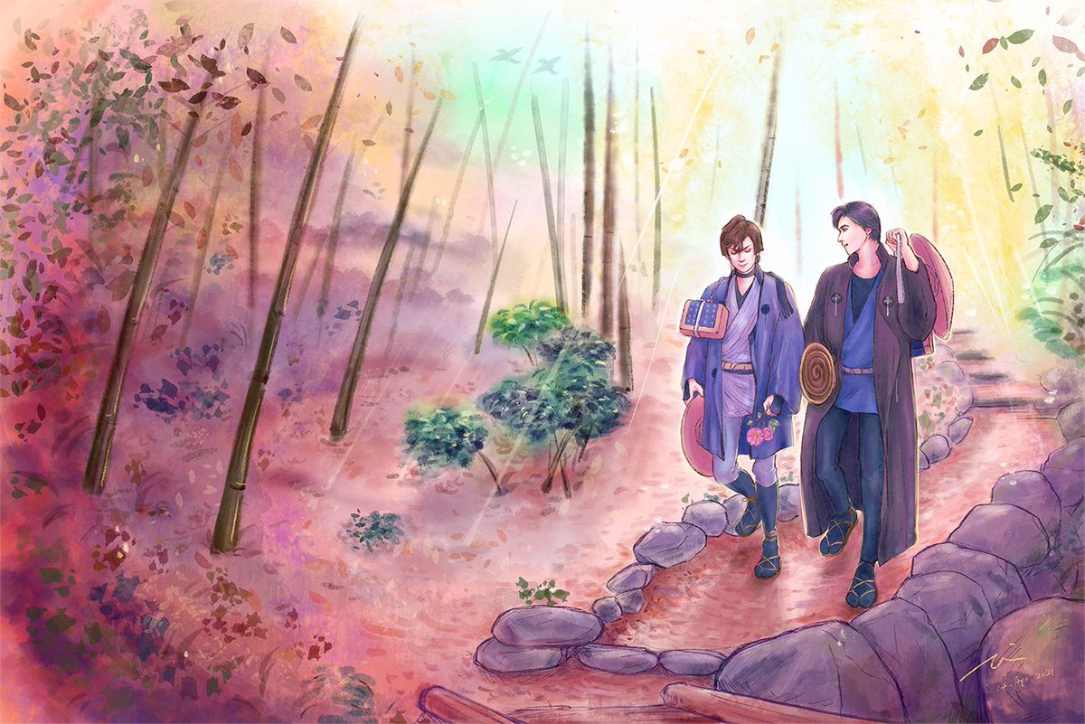 #今年も残りわずかなので今年一番伸びた絵を貼る見た絵描きさんも強制でやる 別アカウントだけどたぶんこれかな~。 ちょうどいまくらいのシーズンの絵ですね🍁 これから始める「旅する兄ちゃんズ」シリーズの礎になりそうな絵。