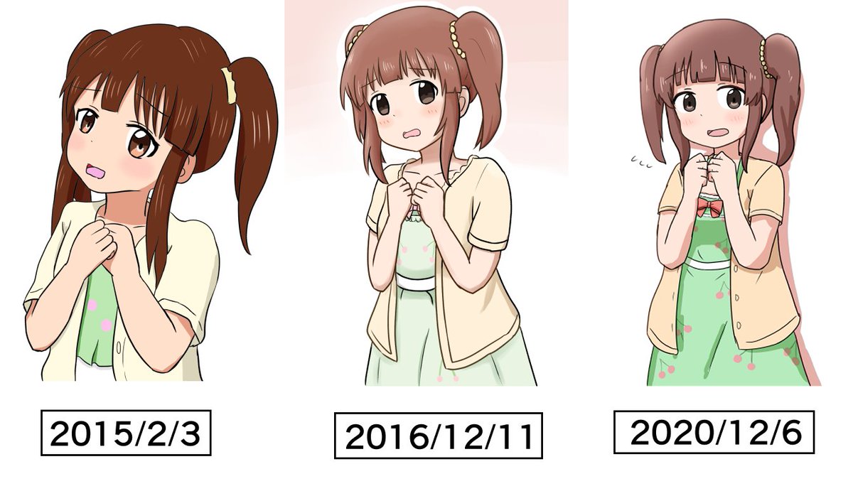 0 5 昔描いた絵と同じポーズ取らせて比較するやつやってた 20/12/06 13:24