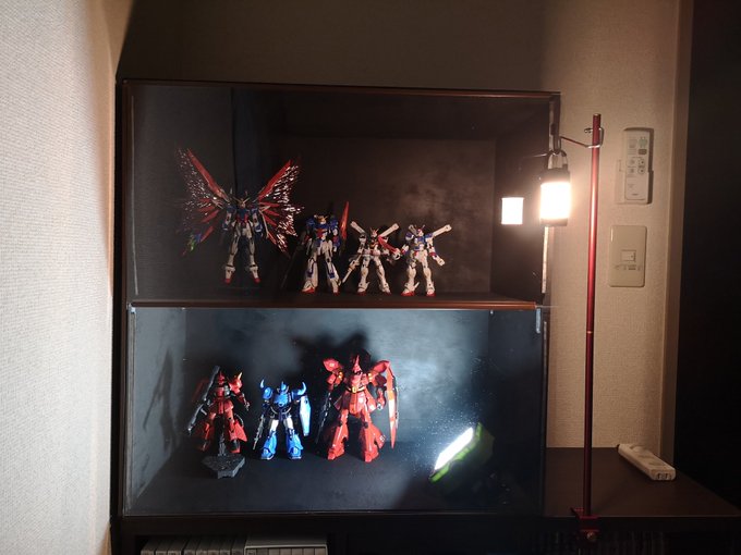 今日ほぼ1日がかりでガンプラ用ショーケースをDIY 素人ながらも中々いい感じにできました ライトはこれから増設予定 #ガンプラ #DIY #はじめてのDIY #ガンプラの画像貼るとRTされると聞いて #ガンプラ好きな人と繋がりたい