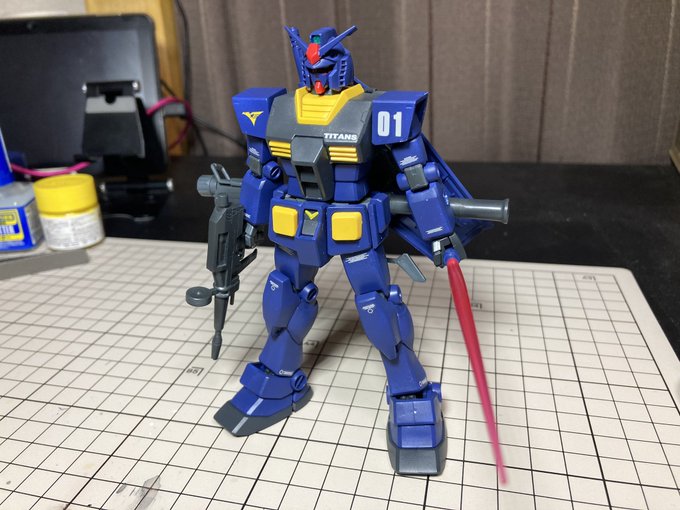 #今月作ったプラモ晒そうぜ 5月は1体だけ作成 HGガンダムをティターンズ仕様にしてみました。 トリコロールカラーじゃないガンダムの方が結構好き #ガンプラ #ガンプラの画像を貼るとRTされると聞いて