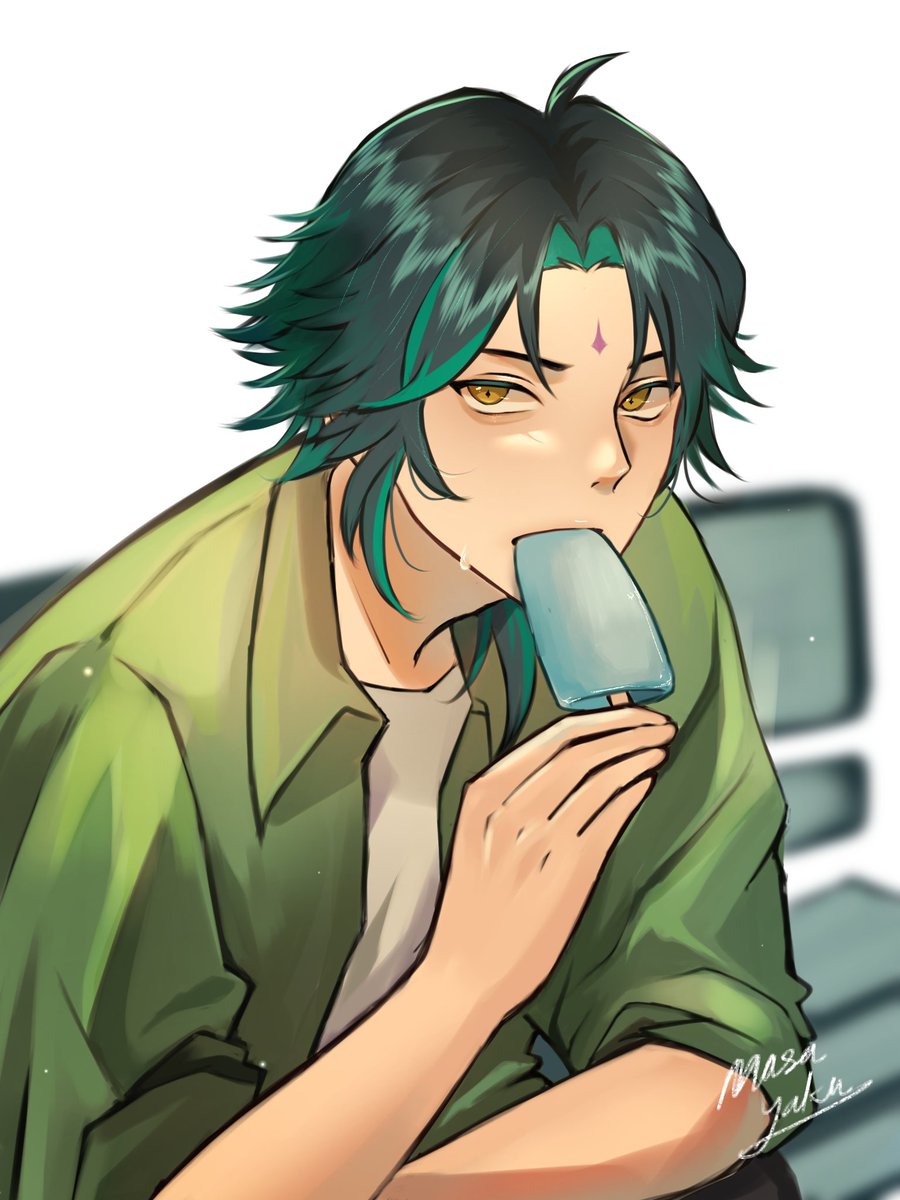 Eat ice cream🍦 #Xiao #xiaofanart #Genshinlmpact #genshinimpactfanart #digitalart #ArtistOnTwitter #Genshinfanart