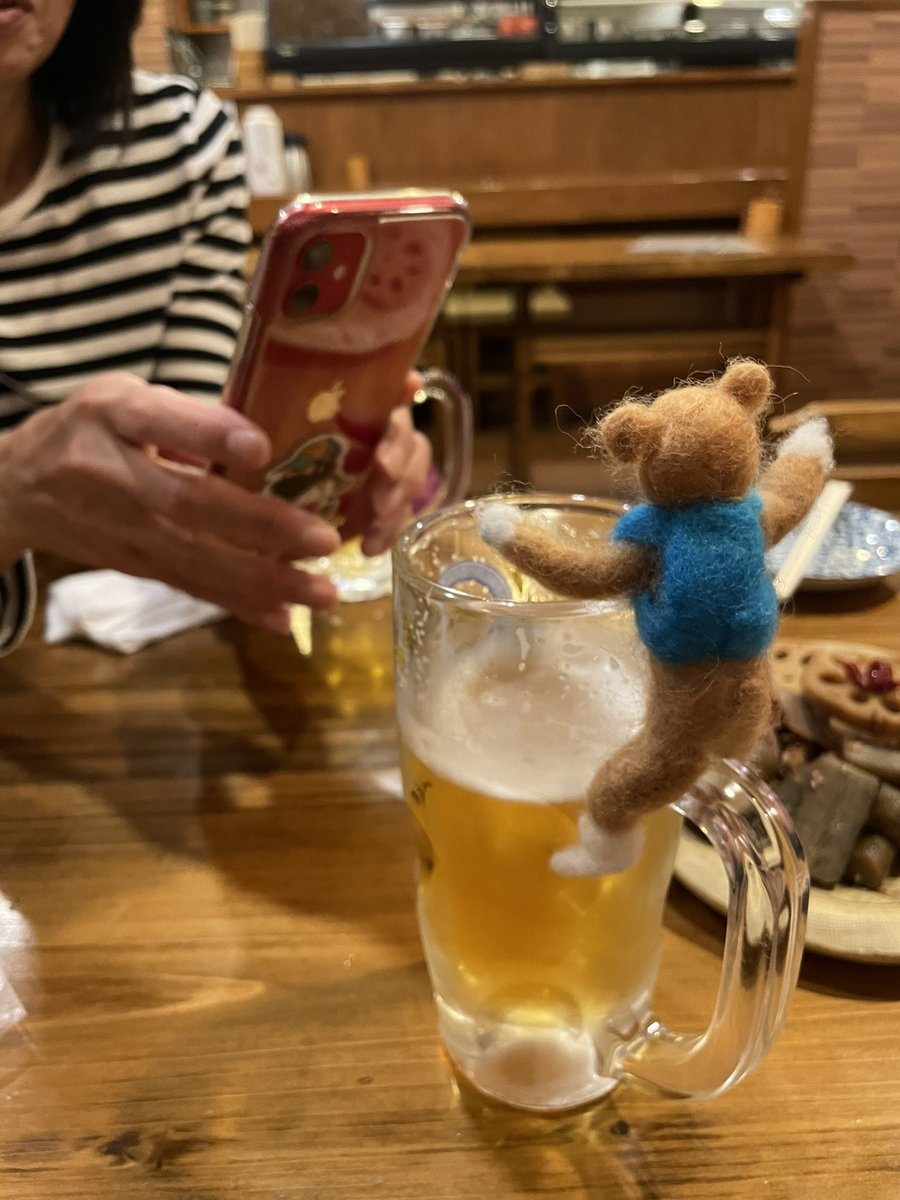 昨日は少しはしゃぎ過ぎた🐻 #フェルトマスコット #羊毛フェルト #ビール