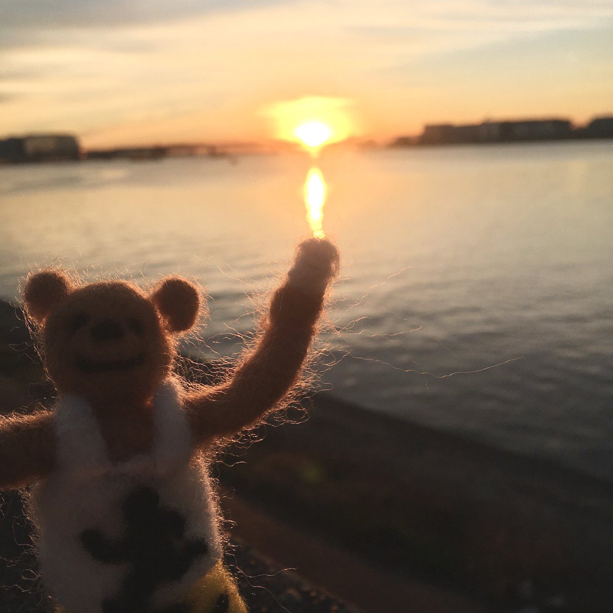 朝日を見に走って来た。 #朝ラン #多摩川 #羊毛フェルト #フェルトマスコット #トレーニング