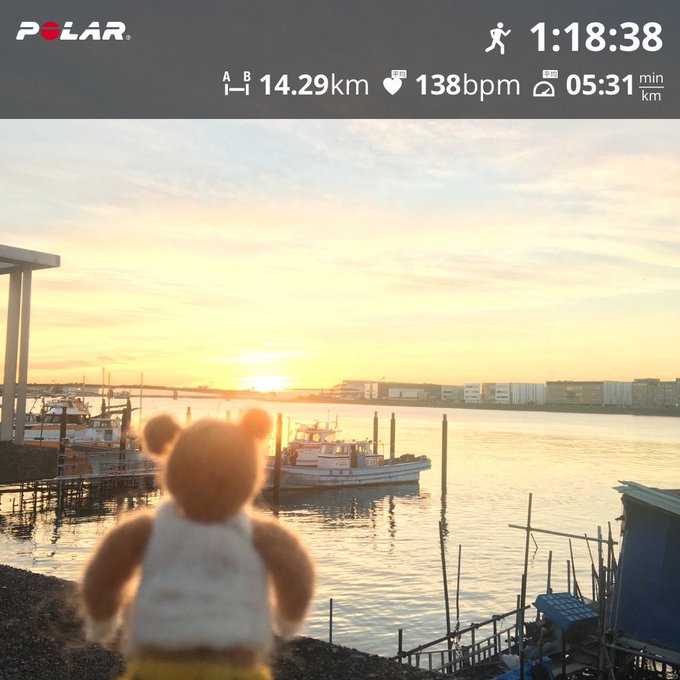 0 5 朝日を見に走って来た。 #朝ラン #多摩川 #羊毛フェルト #フェルトマスコット #トレーニング 20/12/15 10:55