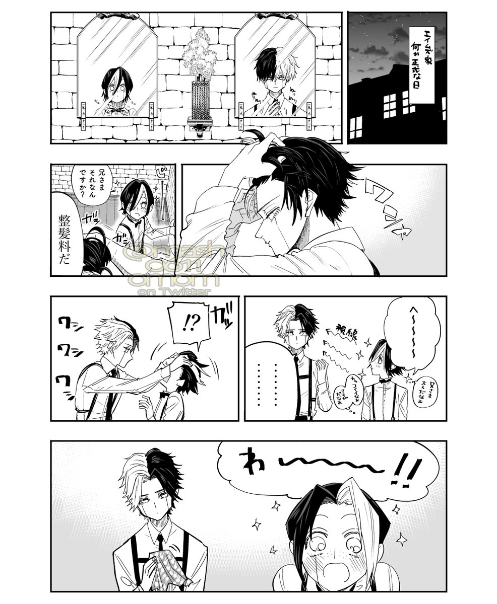 レイ+フィン 9、10歳くらい 寝起きからあの髪型なのでセットじゃないなあと思いつつセットする前の髪の毛好きなのでこういう・・・ことあったらいいね・・・っていう・・・
