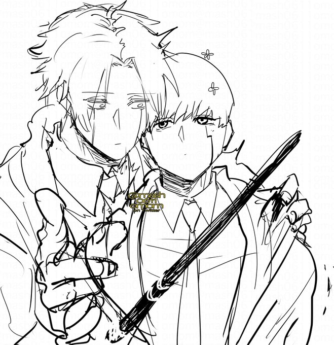 レイマシュ再録本付き合う前と後に分けて作るつもりのそれぞれの表紙ラフ