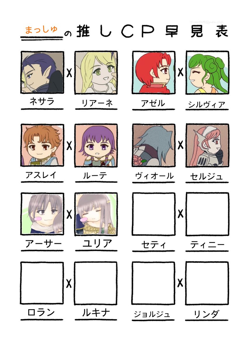 #今月描いた絵を晒そう 今月はジョルリンとロラルキ、プラス推しを描きたいタグの面々でした〜😊 その節はありがとうございました〜✨ 9月は推しカプ表の残り1枠、セティニーを描く💪 (そして次の表に続く) twitter.com/mash0717/sta…