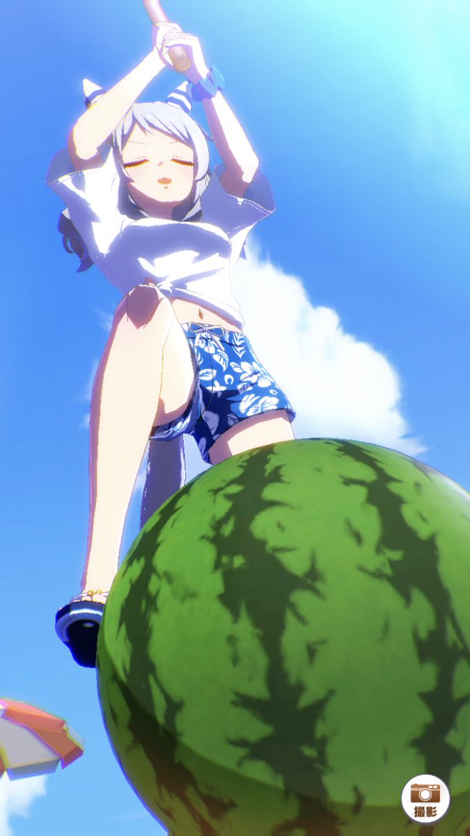 ウマさんぽ、意気揚々とスイカ割ろうとして失敗したミラ子の反応よ🍉