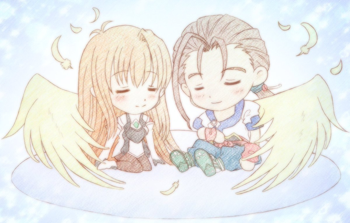#ゼノギアス22周年 おめでとうございます☺️一番印象に残っているゲームです✨ 片翼の天使、フェイとエリィ絵でお祝いです🙇♀️😇二枚目は過去絵を少し加工した再掲載です✍️ 今年も皆さん楽しいゼノギアス生活が送れますように😊