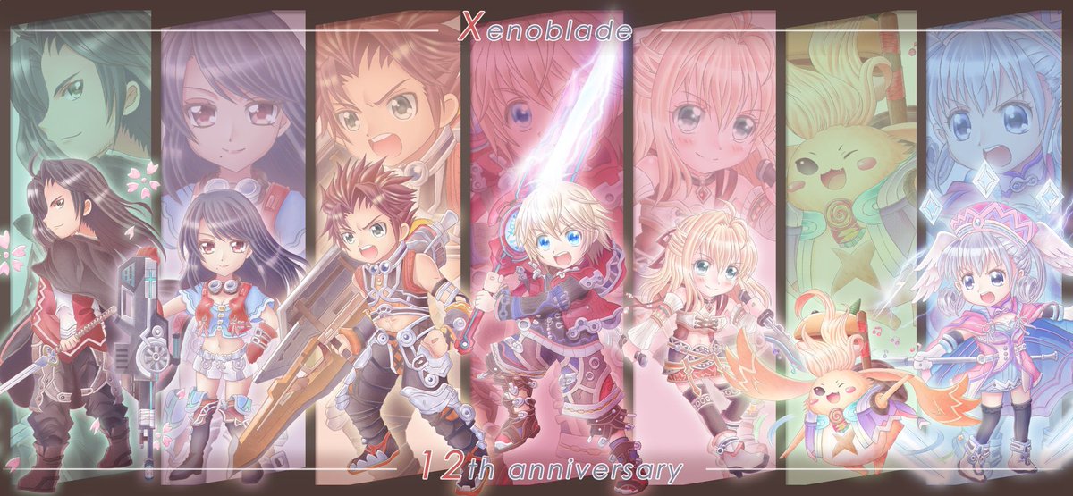#Xenoblade_fes22 ゼノブレ12周年㊗️おめでとうございます~~🎉 2年前のお祝い時、下塗りで力尽きて心残りだった集合絵を厚塗りしました🙇♀️ 胸熱な仲間達と大冒険🤖幻想的なフィールドやストーリー演出も本当に感動するので😭 皆様ぜひプレイして下さいませ👏