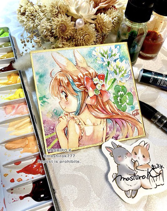 #ヨリドリミドリ展 4日目もよろしくお願いいたします🌱ꪔ̤̮ꪔ̤̫✨ 🌸通販詳細ページ r.goope.jp/artcocoon/free… 🌸ましろ.K作品の通販リストページ r.goope.jp/artcocoon/free… #アナログ絵 #うさぎさん twitter.com/mashirok777/st…