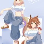 トプロのナムコのやつの衣装好き マーチャンにも着てもらった なーんもでなかったので構図模写お勉強 #ナリタトップロード #アストンマーチャン #ウマ娘