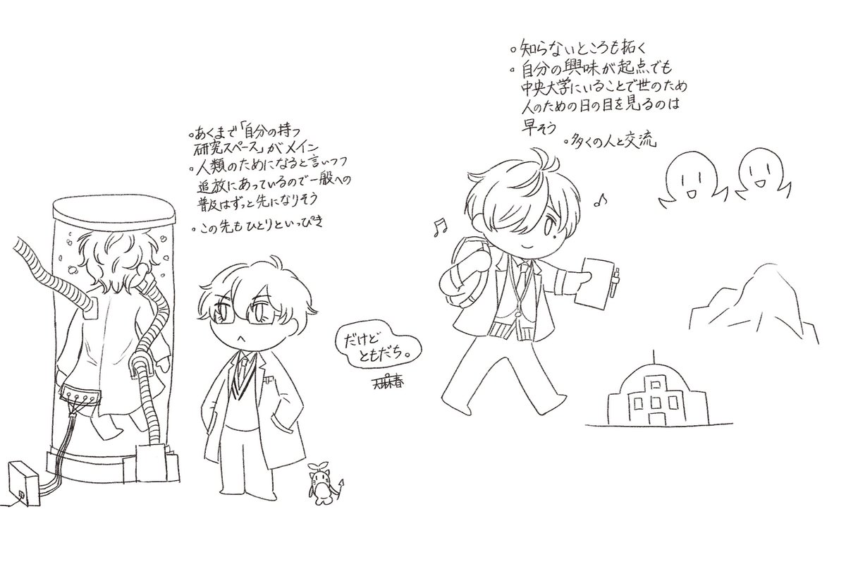 1 22 #まめねことレオス #絵バンス 逆方向に全力で走っててもどこかで接点があってうまく噛み合うこともあるという人間の不思議と希望をみているところがあります 23/04/10 23:56