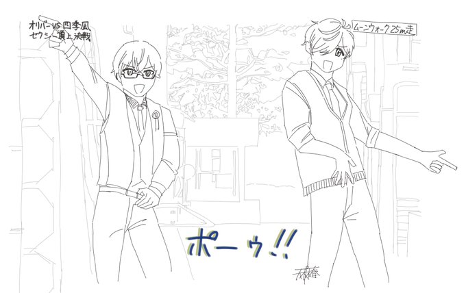64 354 #SeraPic #四季彩画 #まめねことレオス #絵バンス 好きな人と好きな人と好きな人と好きな人のこういう感じが好きという絵です 23/04/16 15:42