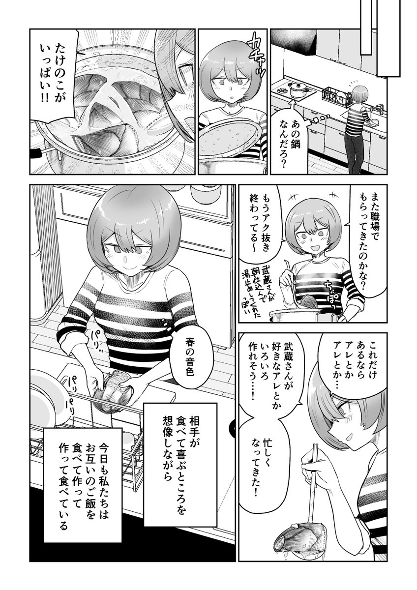 こちらの漫画はまんがタイム系二誌で連載中の『冷めないふたりのひとりご飯』という すれ違いつつも楽しく食べて作ってしている夫婦の少し変わったグルメ漫画です 気になった方はお手にとって頂けますと幸いです! amazon.co.jp/dp/4832258761