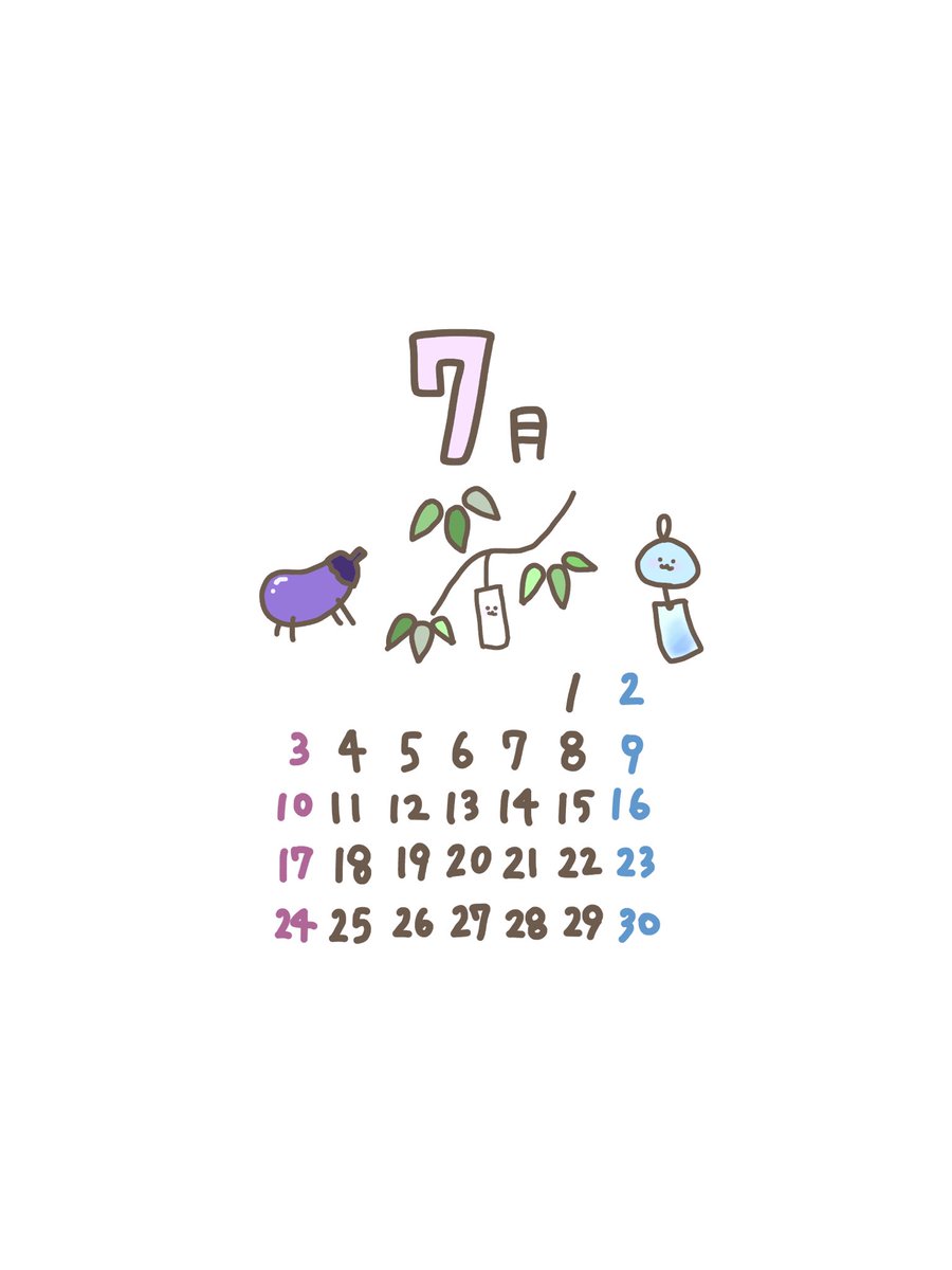 7月のカレンダーです( ˊ꒳ˋ ) 🎋🌠 使っていただける方はフォロー、いいねなどお願いします🤴🏻👸🏼💫 #カレンダー配布 #素材配布 #7月 #イラスト #ゆるいイラスト