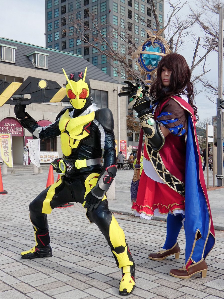 【#コスピク(#門司港)11/10】 #レオナルド・ダ・ヴィンチ (Fate/Grand Order) ➡️@shuw5180 #仮面ライダーゼロワン ➡️@mashumarron_ 共通点は両方とも武器持ち✨笑 ダヴィンチさんの杖武器のカッコ良さには驚きました😨‼️ 一緒にお写真撮っていただき、ありがとうございました😊📸 #コスプレ