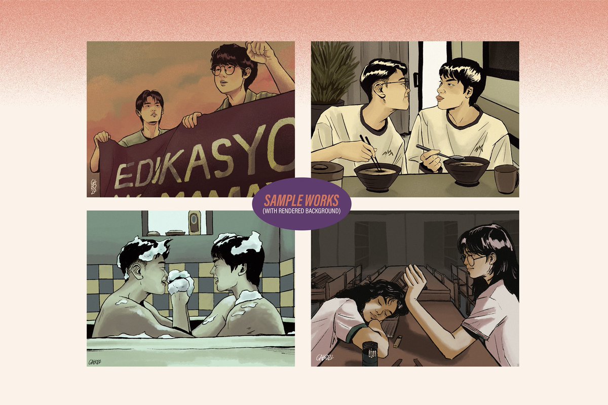 Hello #QueerArtistPH 🏳️🌈 !! I'm Gab and I like illustrating my favorite lines from songs I love and making it queer ✨ #Pride2022