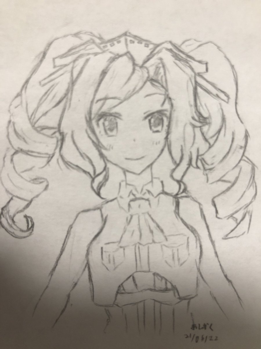 シェフィールドさん 髪型が難しすぎる+右向きのコンボでいろいろ気になるとことはあるけど何とか一時間で・・・ 表情は結構上手く描けたかなぁと #艦これ版深夜の真剣お絵描き60分一本勝負 #艦これ版真剣お絵描き60分一本勝負_20210614