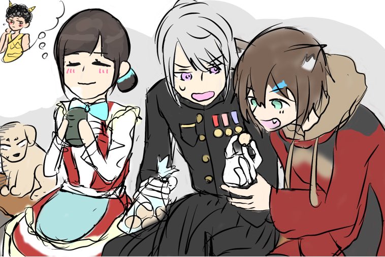 にじ診断のカオス桃太郎。 ある意味最強なメンツだったな… #でろあーと #のらねっこあら #詩子あーと