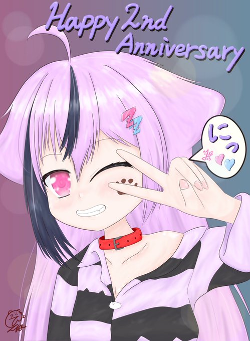 『はっぴーせかんどあにばーさりー💜』 #あとりえまくら