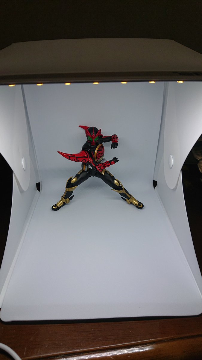 フィギュアの撮影ハマりすぎてとうとうミニ撮影スタジオ購入した。 でもこれたったの1000円! 早速嫁からプレゼントでも撮影!背景も変えれるのでお得です! 色んなことに応用できそう! #フィギュアーツ写真部 #仮面ライダー好きと繋がりたい