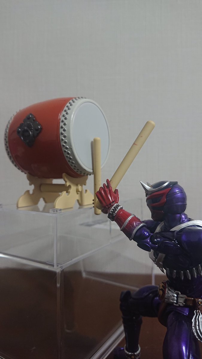 フォロワーさんが真骨彫サイズにピッタリ太鼓買ってるツイート見て思い出して、急遽撮影してみました。 金色や赤色の太鼓がありますが、恐らくこの色が一番合うかと思います! 太鼓の支えないバージョンも撮影 #フィギュアーツ写真部 #マジで鳴る太鼓 #仮面ライダー #仮面ライダー好きと繋がりたい