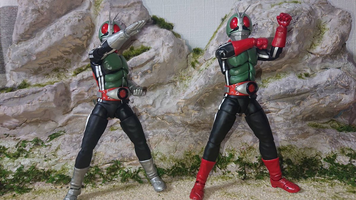 【採石場ジオラマ完成】 遂に嫁と作ってきました採石場ジオラマ完成しました! 特撮聖地岩船山を完全再現とまではいきませんが、岩とか苔の感じも再現! BLACKRXは本当によく爆破してたよね~。ジオウ2068年も再現。安定の1号2号も! #フィギュアーツ写真部 #仮面ライダー50周年