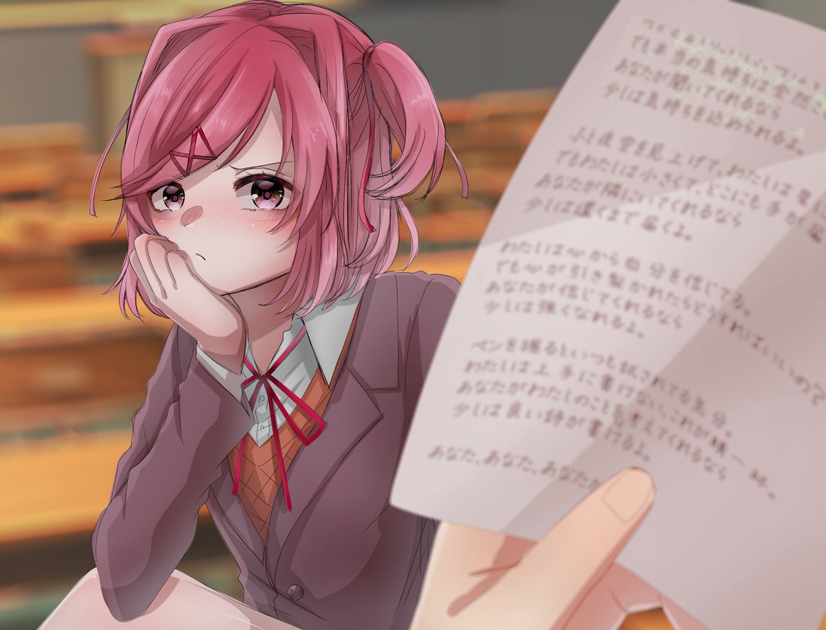 「この詩のタイトルは…」 「な、なんであんたたちそんなにこっちを見てるのよ!?」 【ジャンプ】 #DDLC版深夜のお絵描き60分1本勝負 初めてワンドロやってみたけど遅筆マンはこれが限界😇