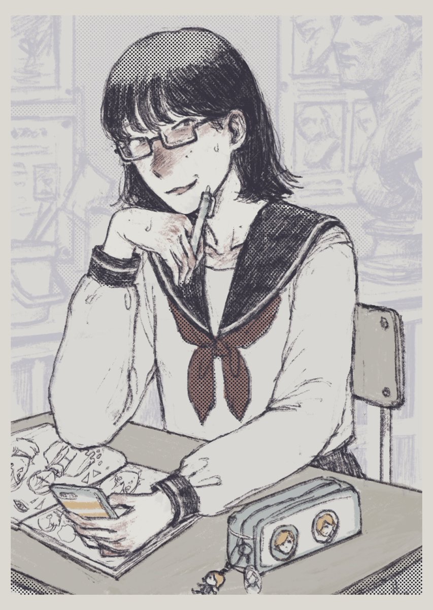 #非垢抜偏屈眼鏡女性 うごメモみたいなペン良い