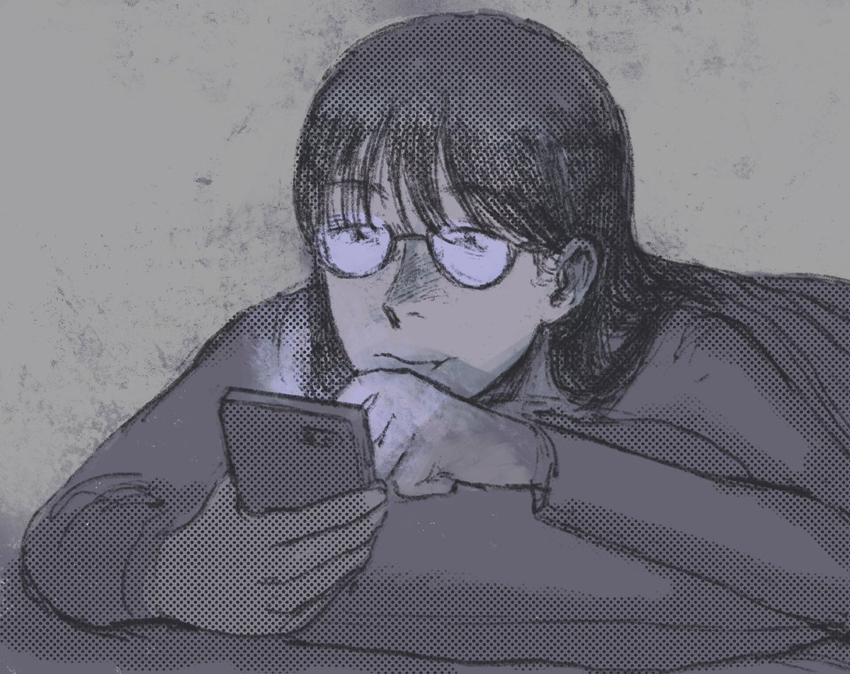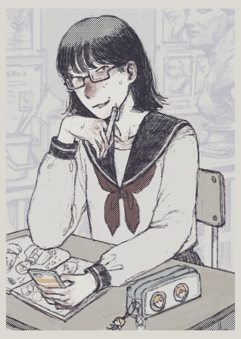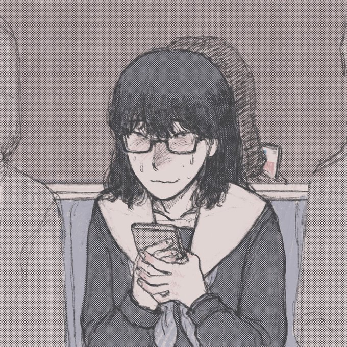 電車内でpixivみてる #非垢抜偏屈眼鏡女性