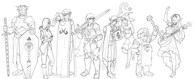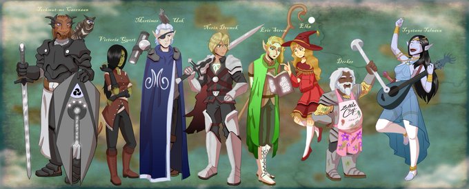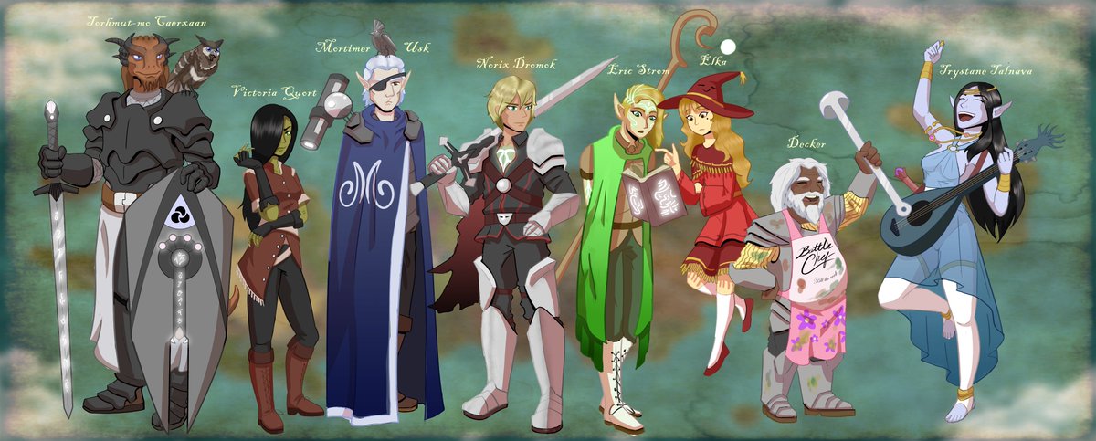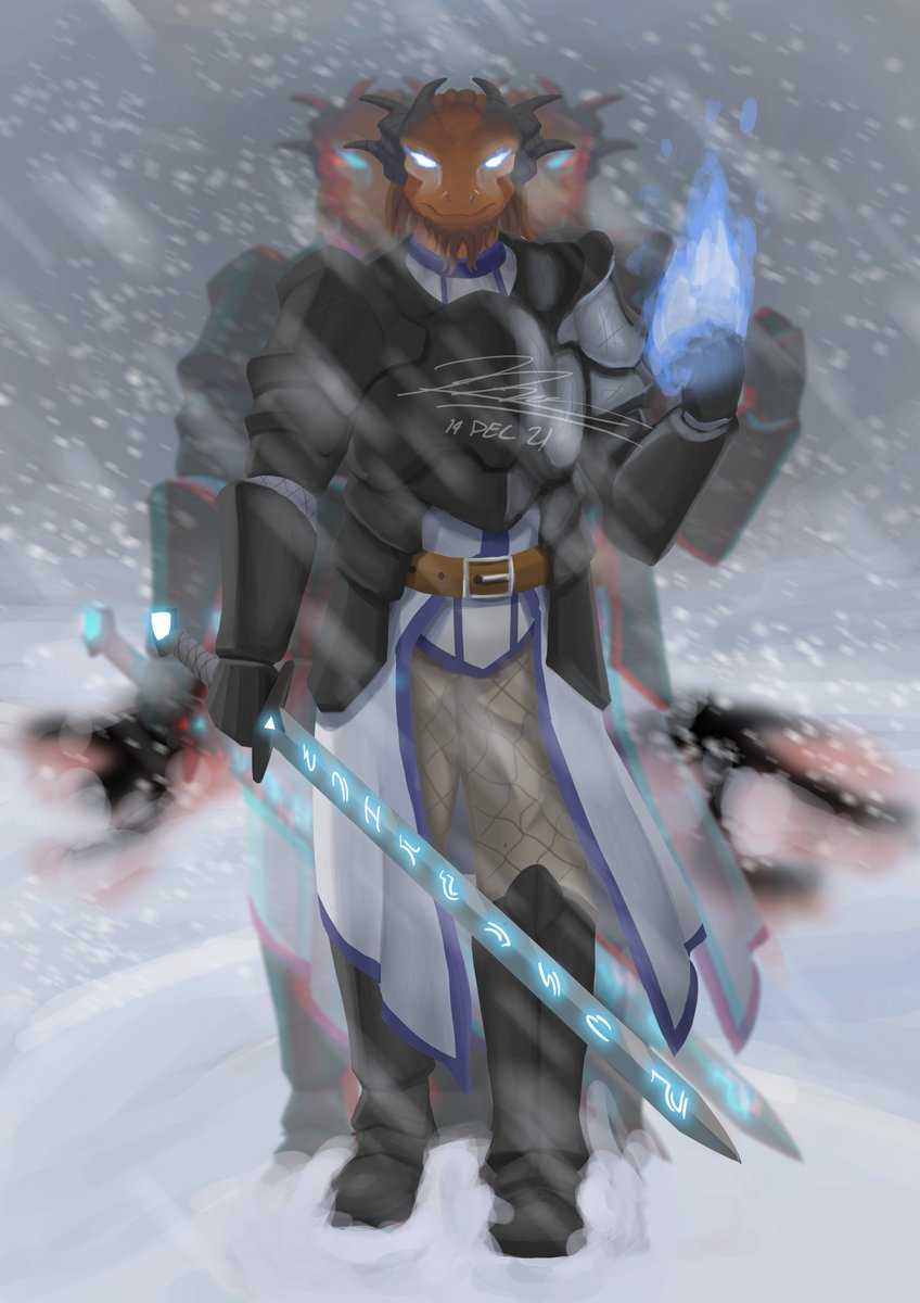 I doodled my two currently active D&D characters Left: Torhmut, Dragonborn Eldritch Knight Right: Bichael, Warforged Circle of the Moon Druid First person to guess which cantrips they're using gets a big fat kiss 😘😘 #artph #artistsontwitter #digitalart #DnDcharacter #dndart