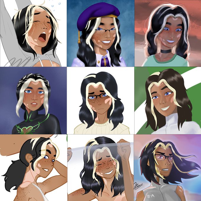 Since it's my OC Kiana's canon bday today here are some sketches of pictures she took while celebrating with her friends (and dad)❤️ #oc #artmoots #digitalart