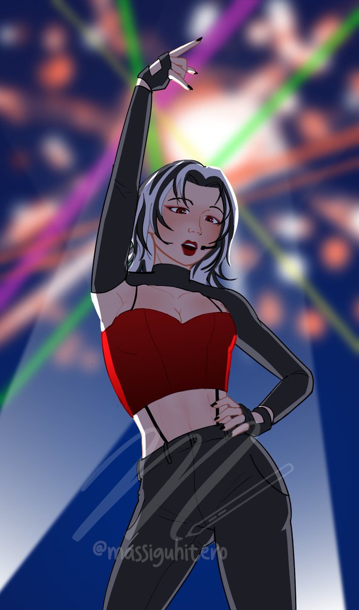 That moment in the concert when the lead idol makes eye contact with you just as the beat drops and all the special effects go off ✨✨✨ #digitalart #artph quick drawing of @heresoms's pop idol OC Hwami as procrastination from schoolwork ❤️