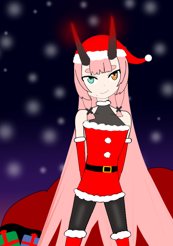 #ぴぃちの宝物 サンタガール ぴぃちさん クリスマスはまだだ でもサンタガールが見たい ! ルドルフの鼻の代わりにオニの角が輝いているので問題ない !
