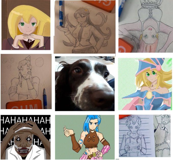 My #artvsartist2021 I have improved a lot this year lol. Dog is replacement of my face btw. I am definitely human. trust me