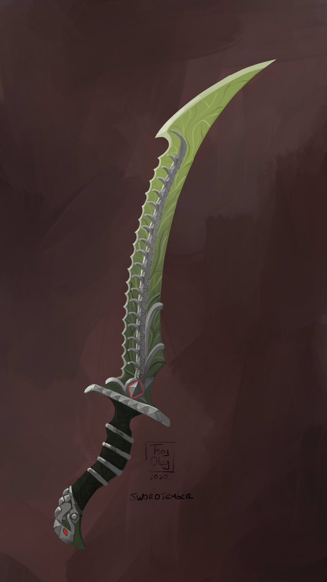 Возобновляю #swordtember. Этот получился немного вымучанный, и мне конечный дизайн не очень нравится. Выбрал за основу зазубренный клинок из второго принца Персии, потому что ничто так качественно не рвёт плоть как зазубрины, помню сам резанулся нормально так.