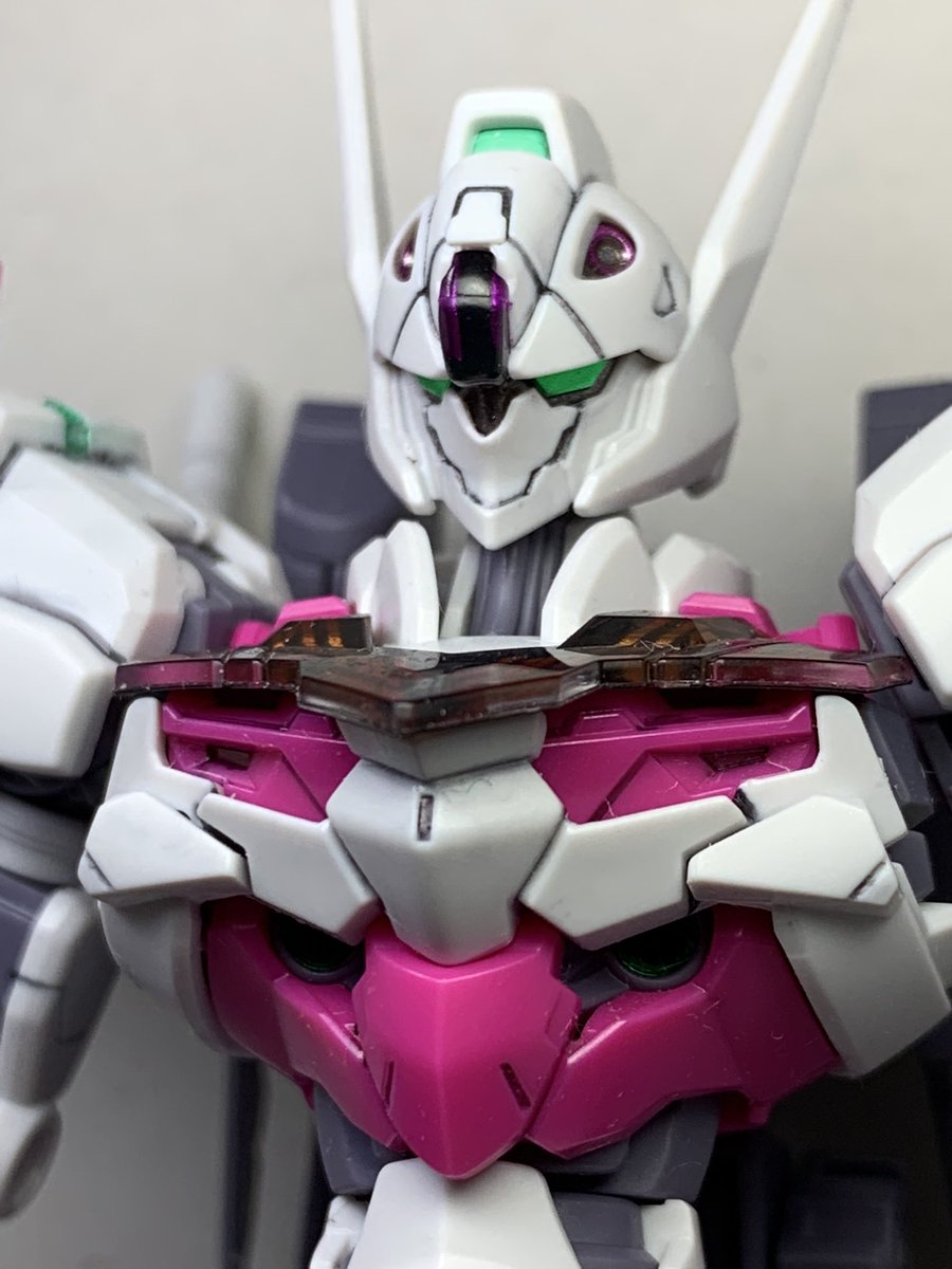 #ガンプラ さくっとルブリスのスミ入れと部分塗装をしてみる 装甲が白いから少しくどいかな⋯? 頭部のバルカンとクリアパーツの部分塗装はなかなかお気に入り