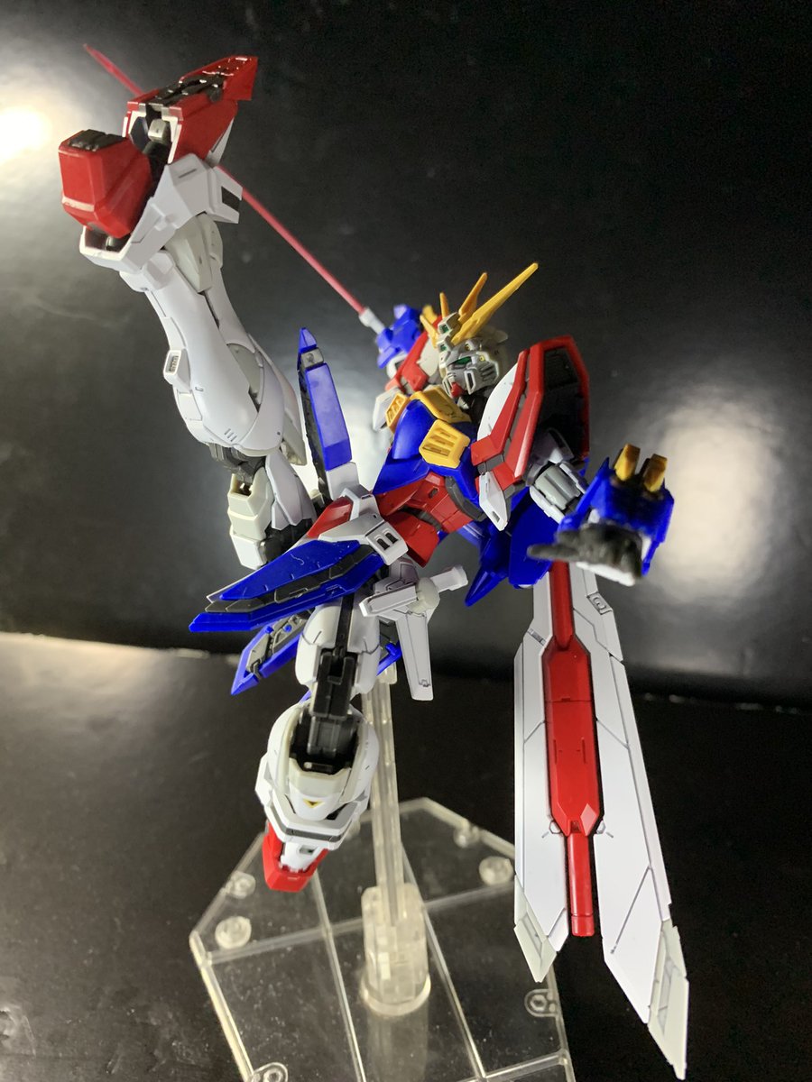 #ガンプラ RGゴッドガンダムスミ入れまで 可動範囲凄くて飾るポーズで悩んでしまう⋯