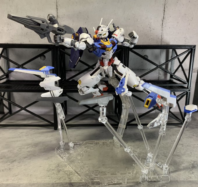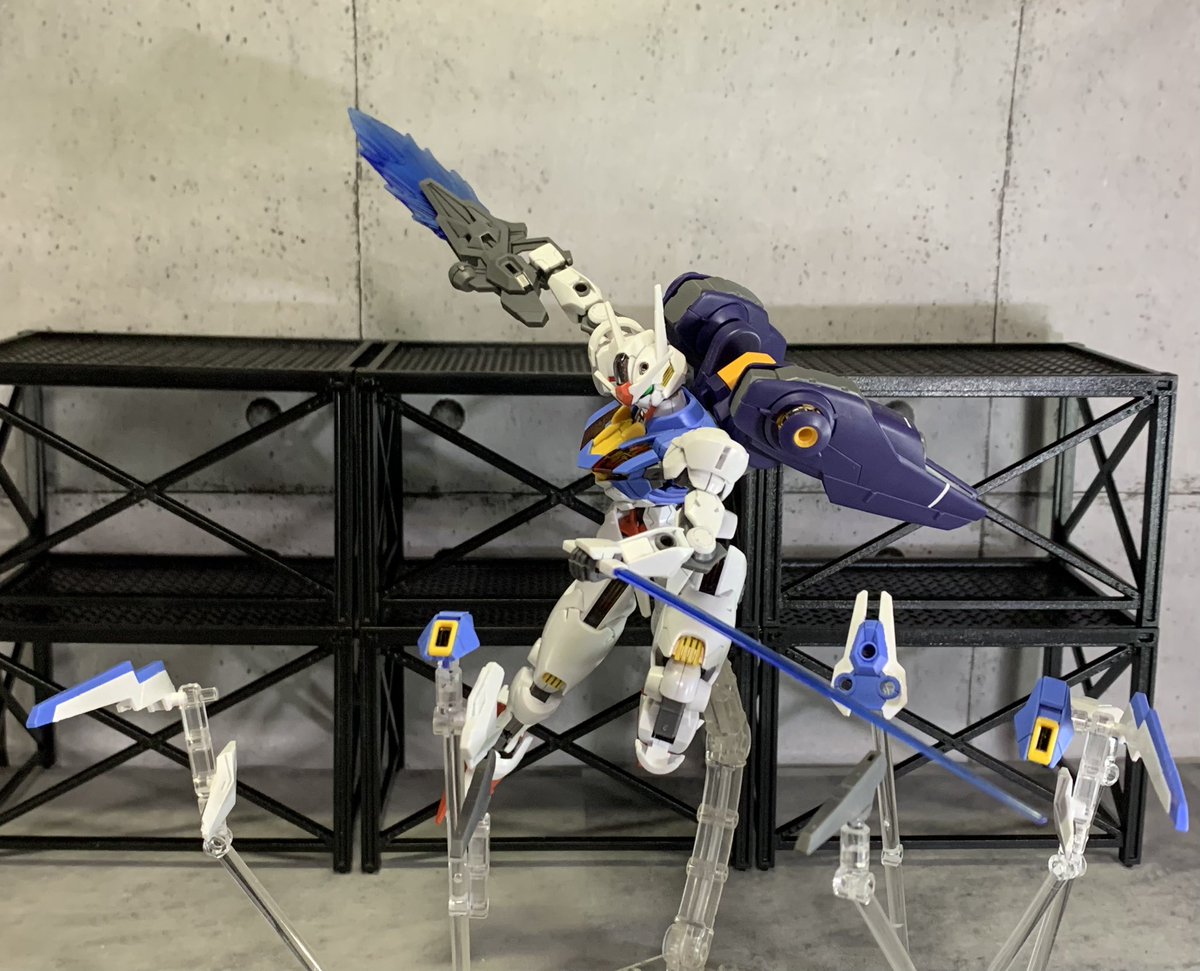1 2 #ガンプラ 意地でもビットステイヴにシールを使いたくなかったので部分塗装したエアリアル改修型 23/03/19 13:13