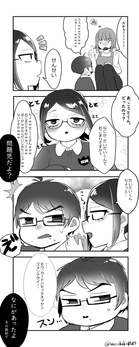 #陰キャラブコメ ⚠️IF話・妄想注意⚠️ チキャンされるJK会長さんを助けるDKツゲェさんの話 (5枚目リプ欄)
