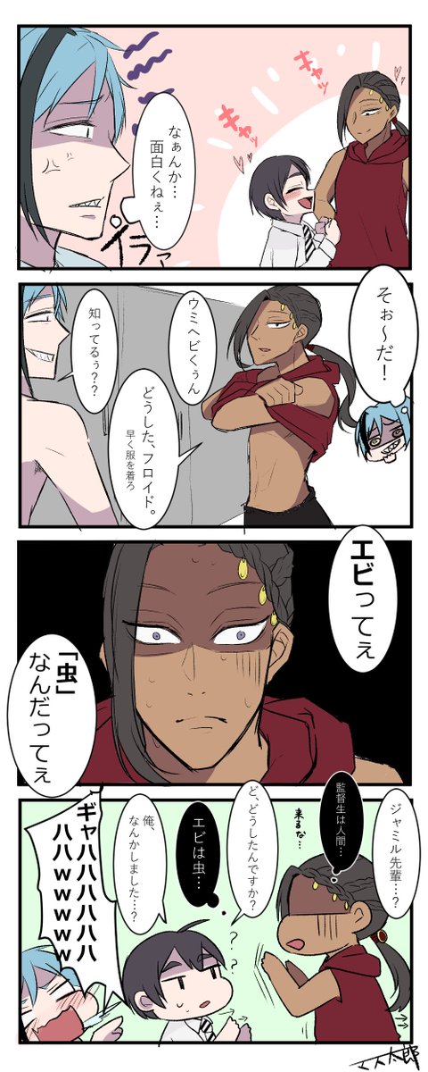 1 5 #twstプラス ⚠️監督生♂顔有り オクタ監♂️ メンダコって臭いらしいです。 23/05/31 20:29