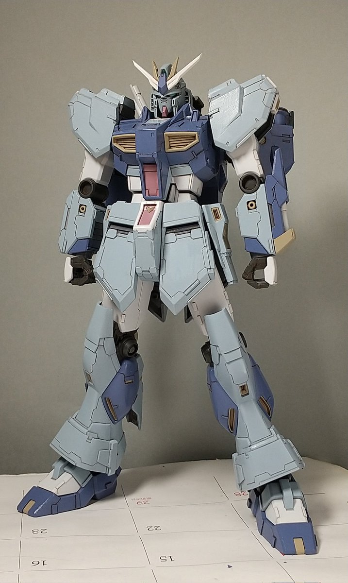 26 214 両腕の大型ビームライフルは使用しない時は銃身は反転させて、銃身を広げたらビームを拡散させることが出来るみたいな感じです(*>д<)ノウナイ モウソウ! 結果的には色をMY専用機色リヴェルタカラーとして悩まず塗れたこともあって、予定通りサクッと完成させることが出来ました♪ヽ(*´∀`)ノ 23/05/20 21:06