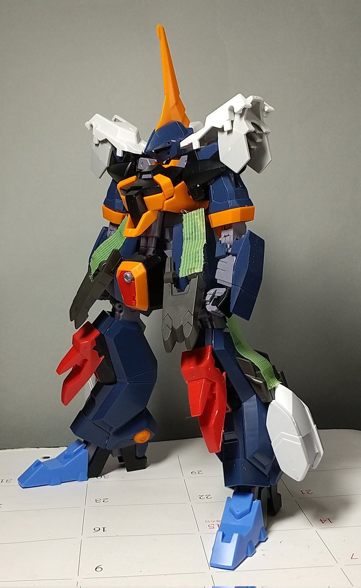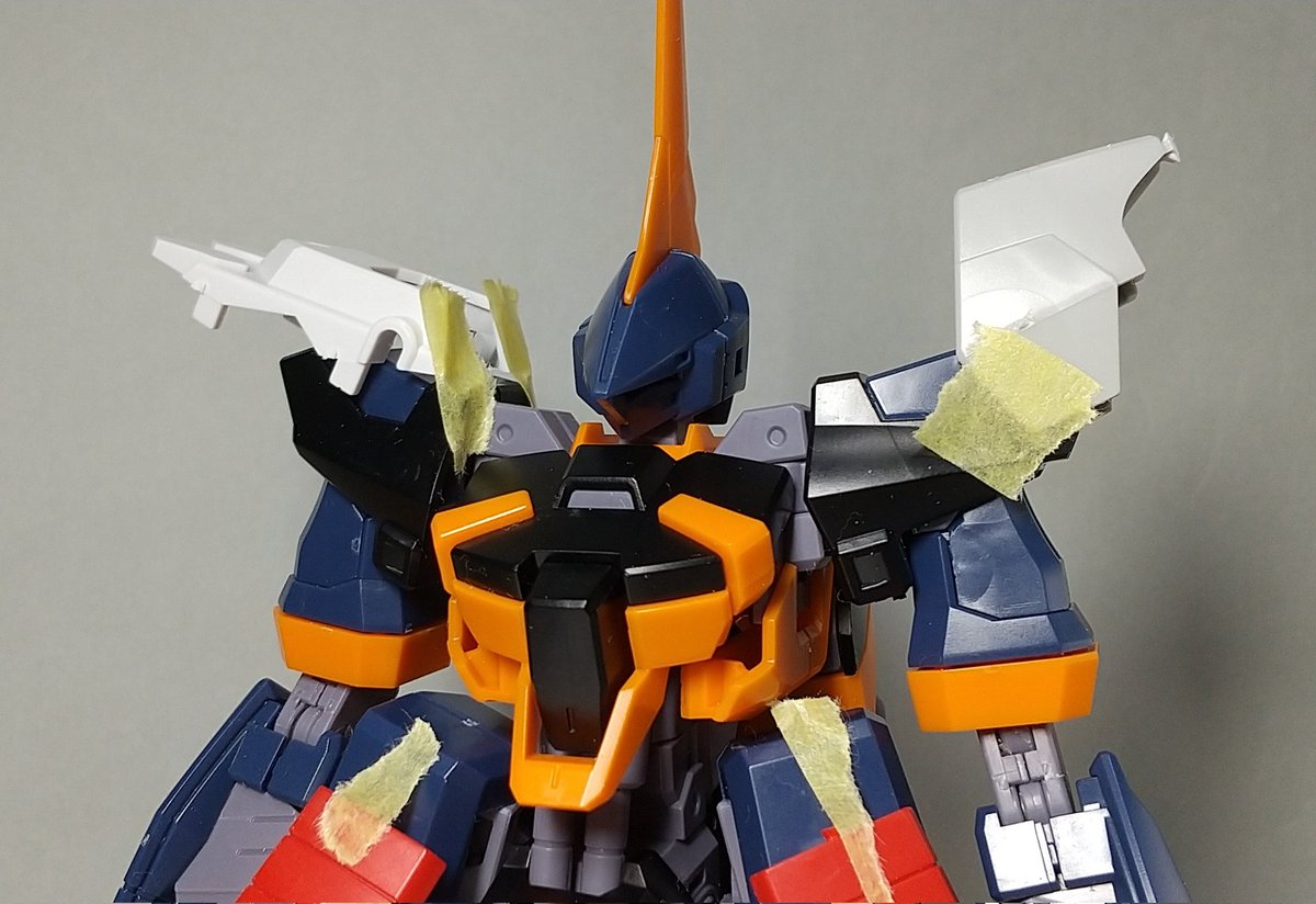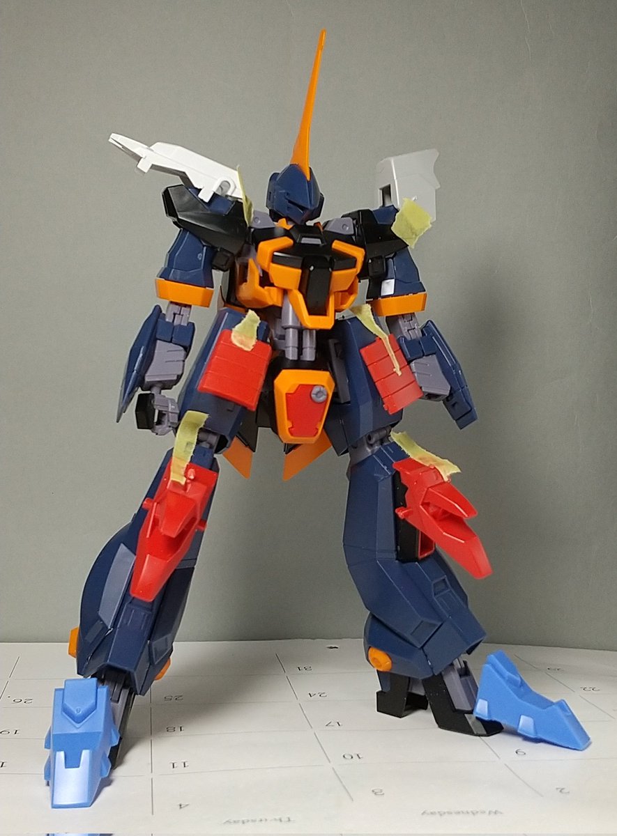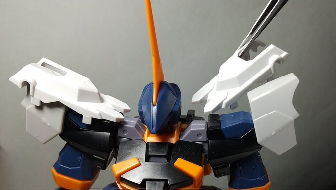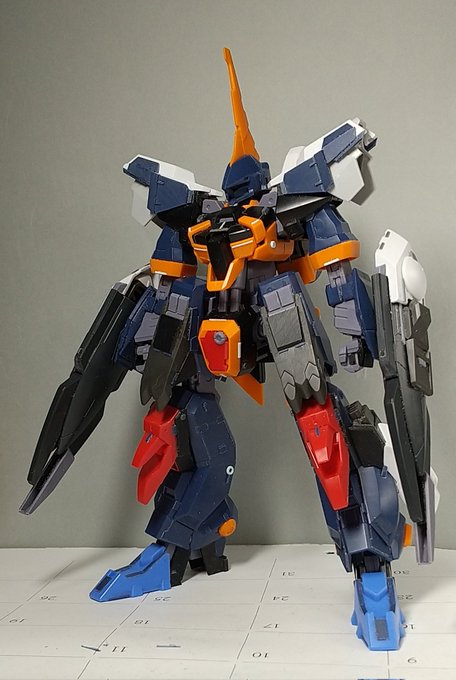 スパロボ初参戦!! アルトアイゼン完成しました!♪(*ーдー)/ 途中なかなか印象が変わらなくて焦りましたが、こうして見ると結構変化してるでしょうか♪ 本体部には全く手を付けずに、ただただ流用パーツ(ガンプラ)を追加していっただけの"後乗せサクサク方式"製作です♪( >ε<)サンコウ ニ シヤスイ カト